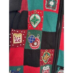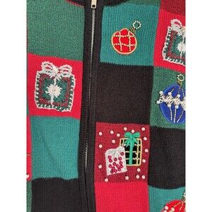 Victoria Jones Vintage 90s Ugly Christmas patchwork 3D beaded sweater cardigan M