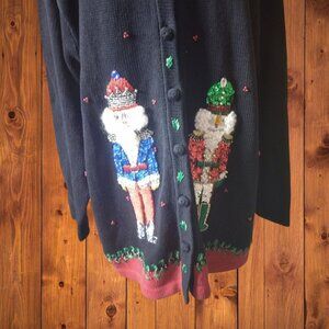 Victoria Jones Woman 1X Black Button Up Christmas Cardigan Nutcracker Vintage
