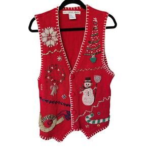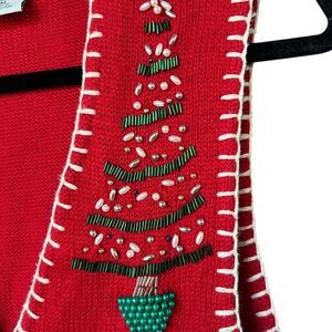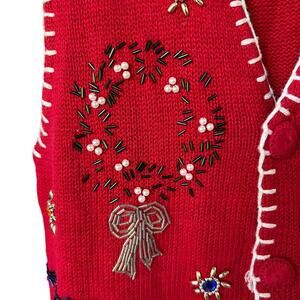 Victoria Jones Women's Beaded + Knit Red Christmas Vest Size Medium