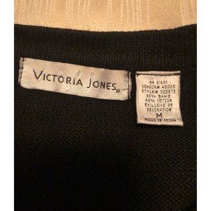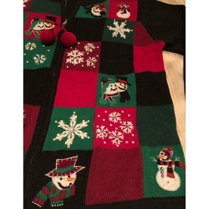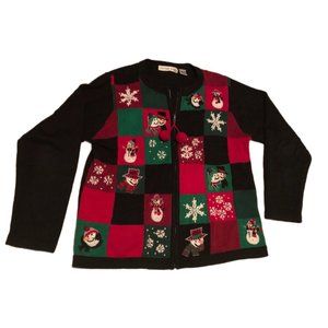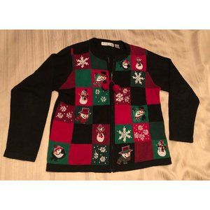 Victoria Jones Womens Christmas Embroidered Jeweled Cardigan Sweater Size M