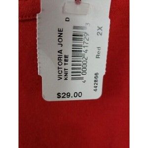 Victoria Jones Womens top red 2X long /sleeve tee Christmas tree NEW