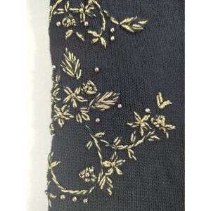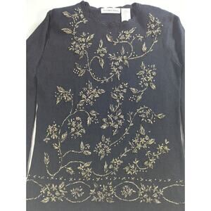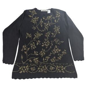 Victoria Jones Y2K Black Floral Embroidered Sweater Top Sz S Cottagecore
