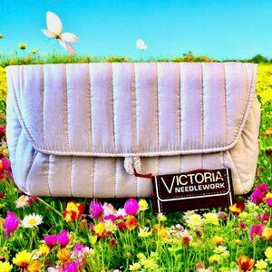 Victoria Needlework Vintage 70's White Quilted Clutch Bag New