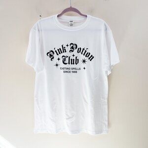 Victoria PINK CAMPUS COTTON TEE Halloween "Potion Club Casting spells" (M) NWT!