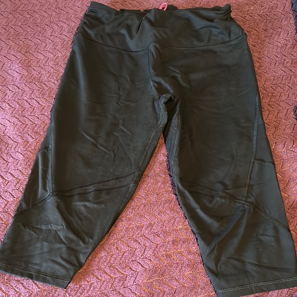 Comfortable and stylish black leggings perfect for activities has some pilling , these are a cropped style. With sheer openings on the sides. Has an adjustable band on the inside