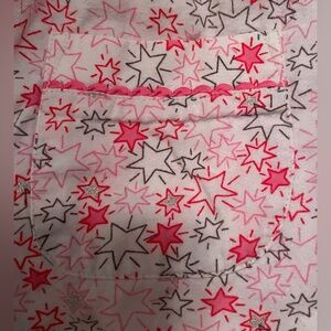 Victoria Secret light pink long sleeve 2 piece pajama set with star design, scalloped, elastic waist and front pocket; size S