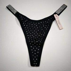 Victoria Secret 32A XS Bombshell Push Up Bikini THONG Set Glam Shine Strap Black