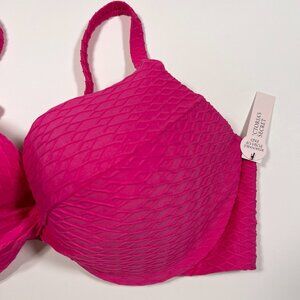 Victoria Secret 32C S TWIST FRONT Push Up Bikini Top Bottom Set Textured Pink