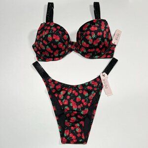 Victoria Secret 34A S SEXY TEE Push Up Bikini Top Bottom Set Shine Strap Cherry