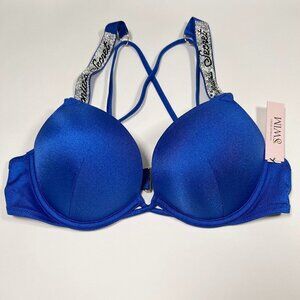 Victoria Secret 34C Bombshell Push Up Bikini Top LOGO Shine Strap Blue