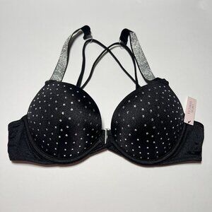 Victoria Secret Bombshell Push Up Bikini Top Glam Cups Shine Strap Black