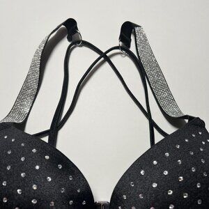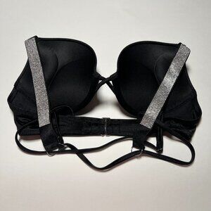 Victoria Secret 36D Bombshell Push Up Bikini Top Glam Cups Shine Strap Black