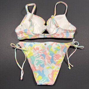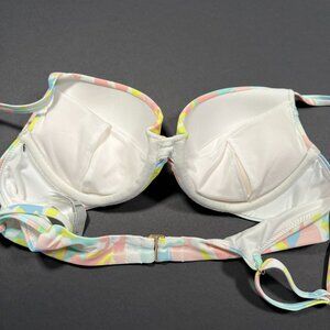Victoria Secret 38C L Twist Front Push Up Bikini Top Set Blue Pink Pastel