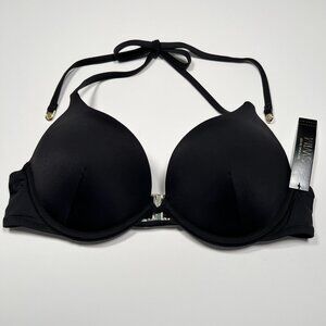 Victoria Secret 38DD Bombshell Push Up Bikini Top Halter Add 2 Cups Black