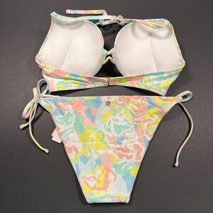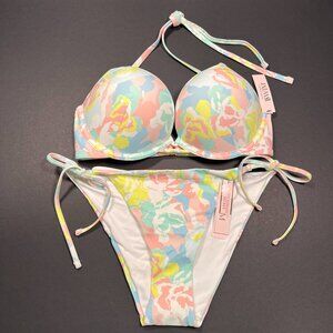 Victoria Secret 38DD XL Bombshell Push Up Bikini Top Bottom Set Blue Pink Pastel