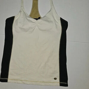 Victoria Secret Active Wide Leg Pant and mesh lined bra Tank Set in cream, black, gold. good condition size Large top and bottom. Very soft anti wrinkle dry fit material