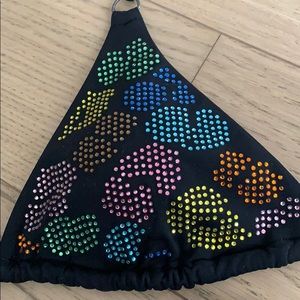 Black string bikini with multicolored rhinestone cheetah print. In excellent condition, worn once. Gorgeous suit!