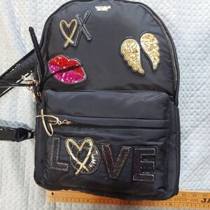 Stylish black backpack with eye-catching embellishments. Perfect for adding a touch of flair to any outfit.