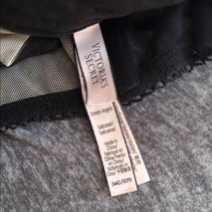 Never use Victoria Secret Dream angel Size 34C This black lace bra combines elegance and allure with its intricate floral pattern and semi-sheer fabric. The longline design offers light support and a stylish silhouette, perfect for layering or wearing as intimate apparel.