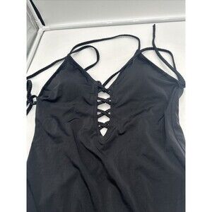 Victoria Secret Black One Piece Deep V Neck Braided Tie Bathing Suit Sz Large