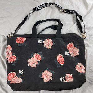 Victoria Secret Black Pink Floral Messenger Bag Duffel Travel Casual Storage