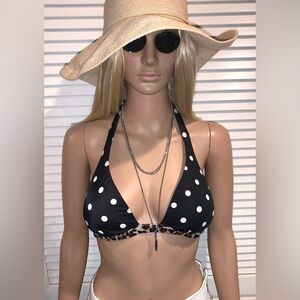 Victoria Secret Black Polka Dot And Leopard Print Bikini Top small