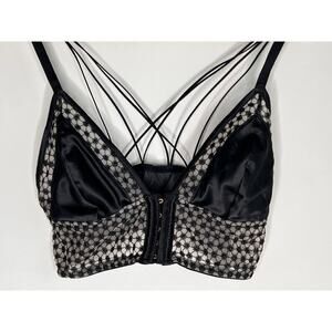 Victoria Secret Black Strappy Starburst Tanga Bralette Women's Size L