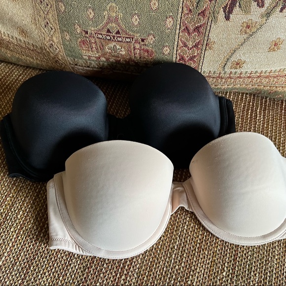 ✅Victoria Secret - Black/Cream Lightly Lined Strapless Bras!