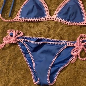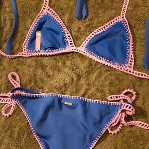 Victoria Secret blue and pink crochet straps bikini. Item is used in good condition.