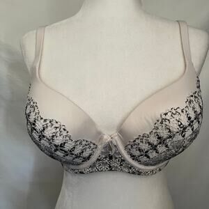 Cream Victoria Secret Body By Victoria Lined Demi Double Bra with Gray Lace