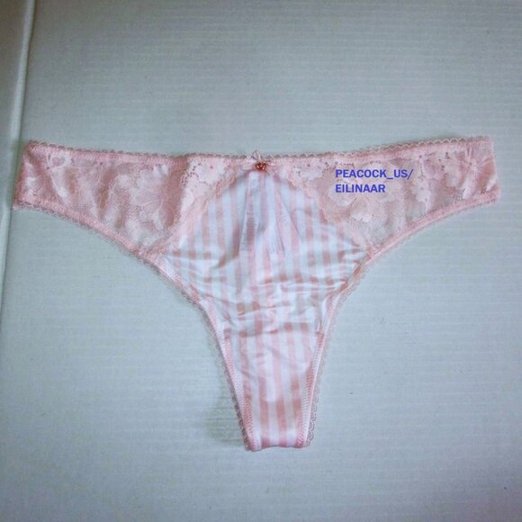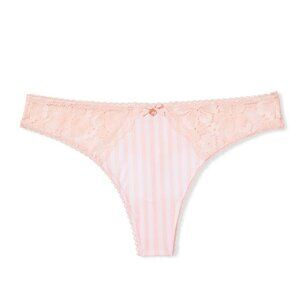 Victoria Secret Body by Victoria Satin Lace Thong Panty Size S Pink White Stripe