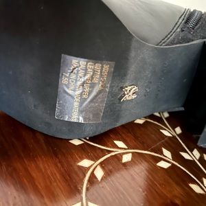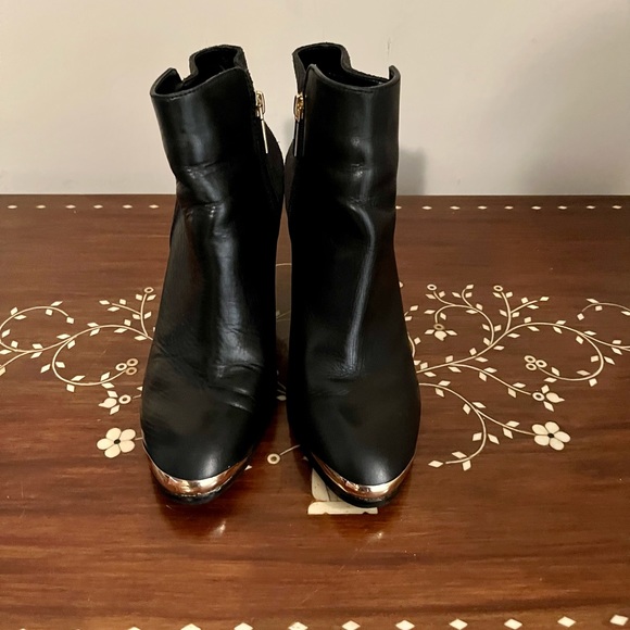 These VS booties are beautiful! Love the gold trim on the front. Black leather and suede in like new condition. Size 7.5.