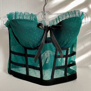 VICTORIA’S SECRET Green DREAM ANGELS Bra Strapless Dotted Mesh Corset Bustier Top Size 32C
