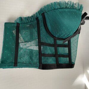 Victoria Secret Bra 32C Dream Angels Bustier Long Line Green Black Boned Ruffle