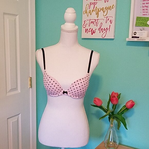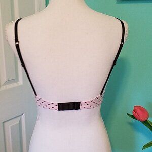 Adorable pink and black polkadot, cotton bra. Lined, underwire bra. Traditional or racerback style back. Excellent condition!