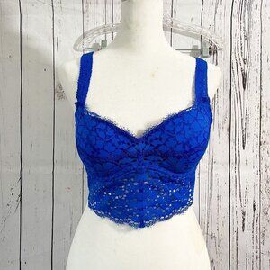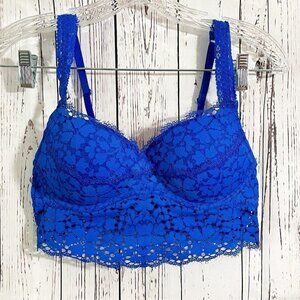 Victoria Secret Bralette Bra Small Lace Molded Cup Adjustable Strap Pull On Blue