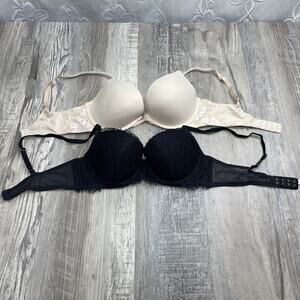 Victoria Secret Bras Lot Dream Angels Black Lace & Push Up Nude Size 34C Lot