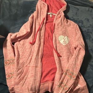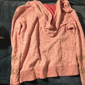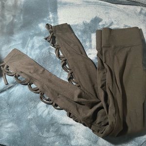 High waisted leggings with lace up detail near the ankles, worn once, otherwise in storage. Light pink tank top, thin, ribbed and never worn, been in storage. Light pink hoodie worn a couple times. All 3 pieces size small and slightly wrinkled from storage.