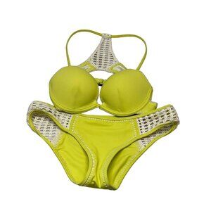 Victoria Secret CROCHET Lime Green PUSH UP BIKINI SWIM SUIT Small