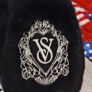 Victoria Secret Closed-Toe Faux Fur Slippers Logo
