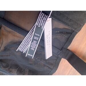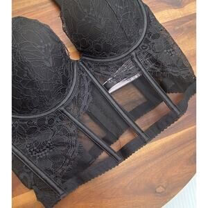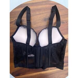 Victoria Secret Corset Bra Top 34B Very Sexy Push Up Black Lace Shine Strap
