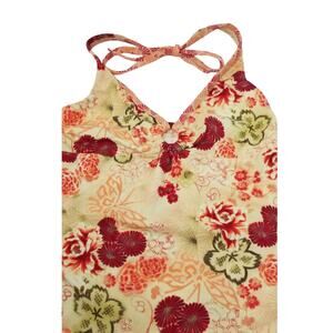 Victoria Secret Cream Red Pink Floral Neck Tie Swim Tankini Women's M