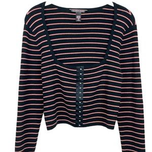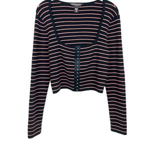 Victoria Secret Cropped Sweater Top Black and Pink St…