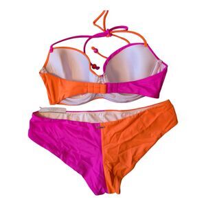 The Victoria's Secret Fabulous Colorblock Cheeky Swimsuit Bikini is a stylish and flattering two-piece bikini set designed for women. The bikini top is a colorblock style with beaded accents, featuring adjustable straps and padding for a comfortable and supportive fit. The cheeky swim bottom adds a touch of playfulness to the overall look, perfect for a day at the beach or pool. This bikini set is a colorful addition to any summer wardrobe, representing the brand's signature blend of fashion and comfort.