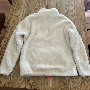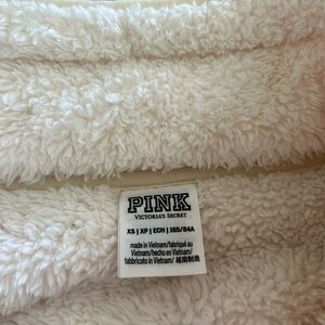 Very warm and cozy Victorias Secret fleece sweater. Great condition, a little wear around the sleeve as pictured. Pretty white color with pink zippers.