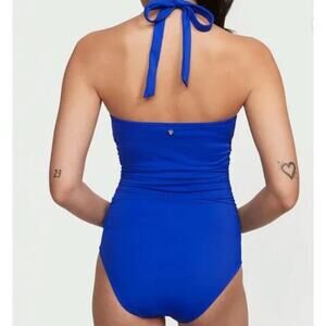 Victoria Secret Forever One Piece Swimsuit Size M Ruched Blue Halter Sexy New
