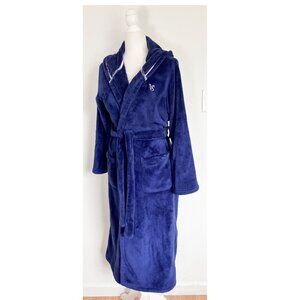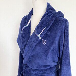Victoria Secret Hooded Robe Blue Plush Embroidered Logo Pockets Belt Housecoat S