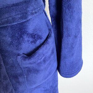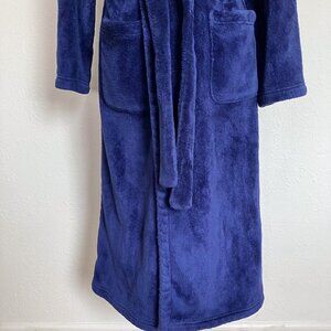 Victoria's Secret Blue Cozy Soft Comfy Fleece Shower Robe Hooded Robe Blue Plush Housecoat