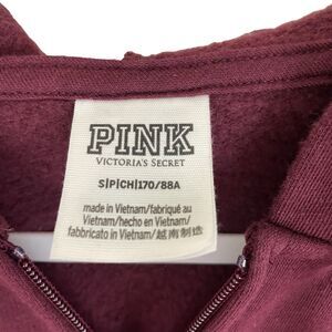 Victoria Secret Hoodie Full Zip Jacket Size Small Maroon Purple with Pink Loop Patch Logo