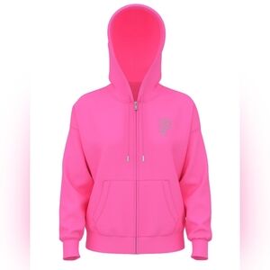 NWT. Victoria Secret Ivy Fleece Vibrant pink hooded zip-up sweatshirt. Comfortable and stylish. Size M